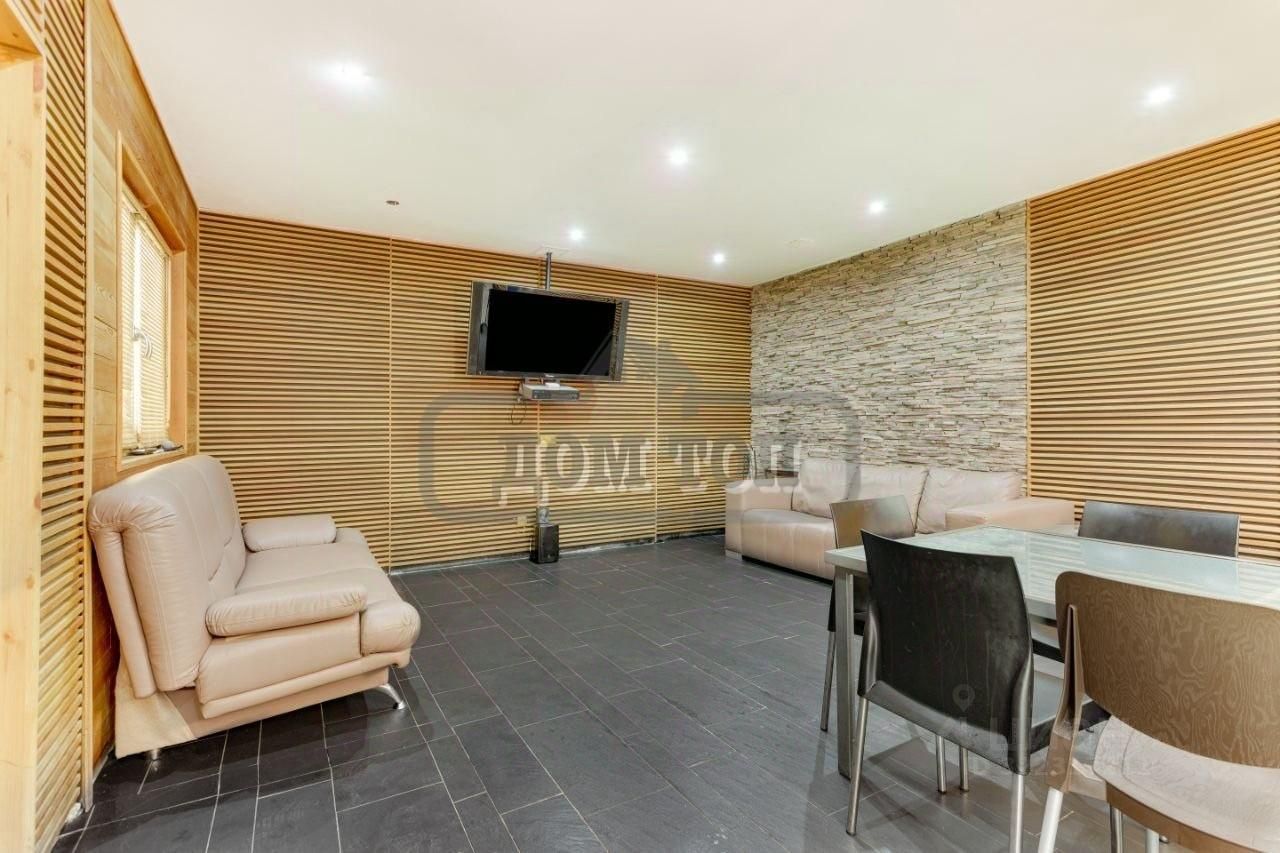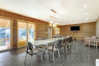 На 1-этаже: гостиная на 30 персона, зона кухни, оборудованная всем необходимым - варочная панель, вытяжка, посудомоечная машина, мойка, микроволновая печь. 2 холодильника (большой полноценный для продуктов и холодильник для напитков). Из зала выход в бассейн. Бассейн с подогревом и радужной подсветкой (размер 6*4*1,7) и сауну. Большая финская сауна (печь на 35 кВт) в этом же блоке санузел, душ. 1 спальная, санузел с душем.