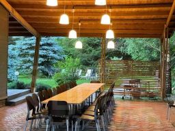 В ДОМЕ: 250 кв.м., 2 этажа, 4 спальни, до 25 спальных мест. На банкет до 30 персон.