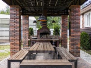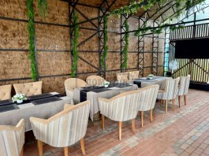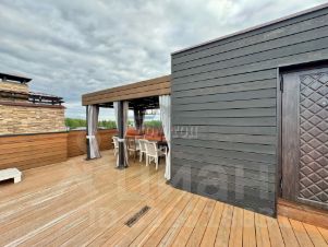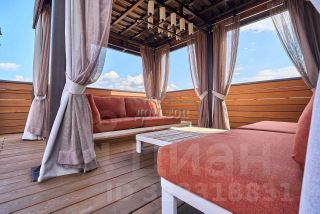 Очень красивая и просторная открытая терраса 150 кв.м. на крыше с закрытой зоной релакса с навесом и диванчиками.