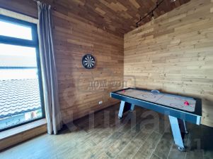 На цокольном этаже: каминный зал с диваном и бильярдом, профессиональный караоке, профессиональная аудиосистема, детская игровая с аэрохоккеем, прачечная, с/у, кладовая.
