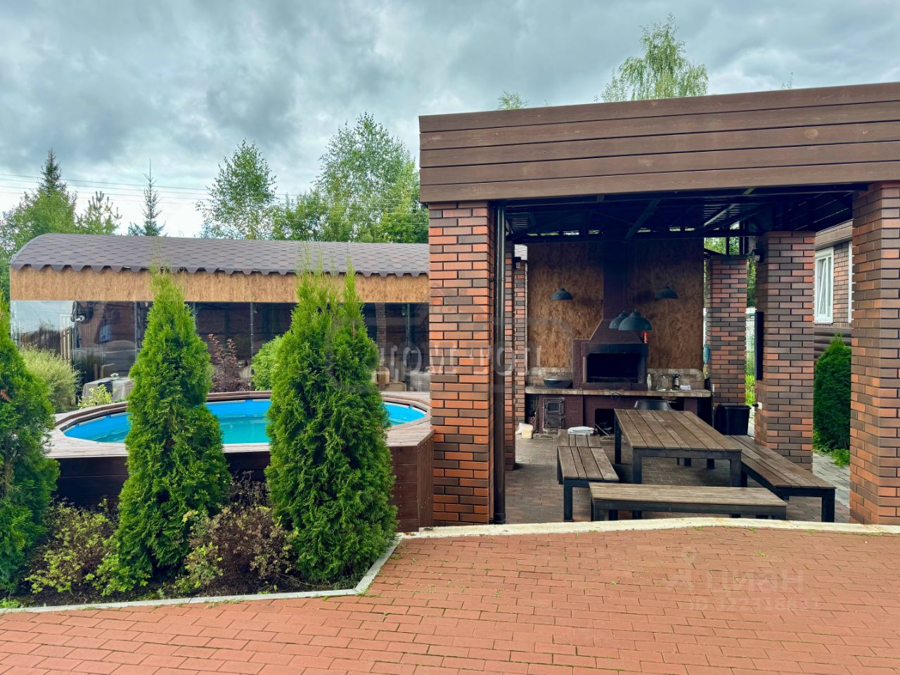 УЧАСТОК: 27 соток. Ухоженная зеленая территория, ландшафтный дизайн. Высажены кустарники и цветы, газон. Дорожки облагорожены. Растут хвойные и лиственные деревья. Территория освещается в темное время суток. Лобное место кострище. Отдельно стоящая баня на дровах. Открытый подогреваемый бассейн до 50 градусов летом и зимой.Банкетный зал под Ваш праздник на 30 персон.Компьютерный зал на 6 персон. Гостевой домик с гостиной, кухней, душем и с/у. Футбольное поле, баскетбольная площадка. Беседка с мангальной зоной. Парковка на 12 автомобилей. В шаговой доступности водоем .