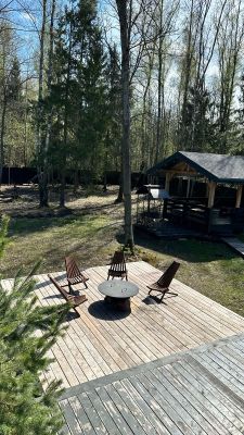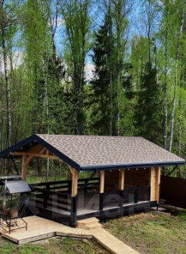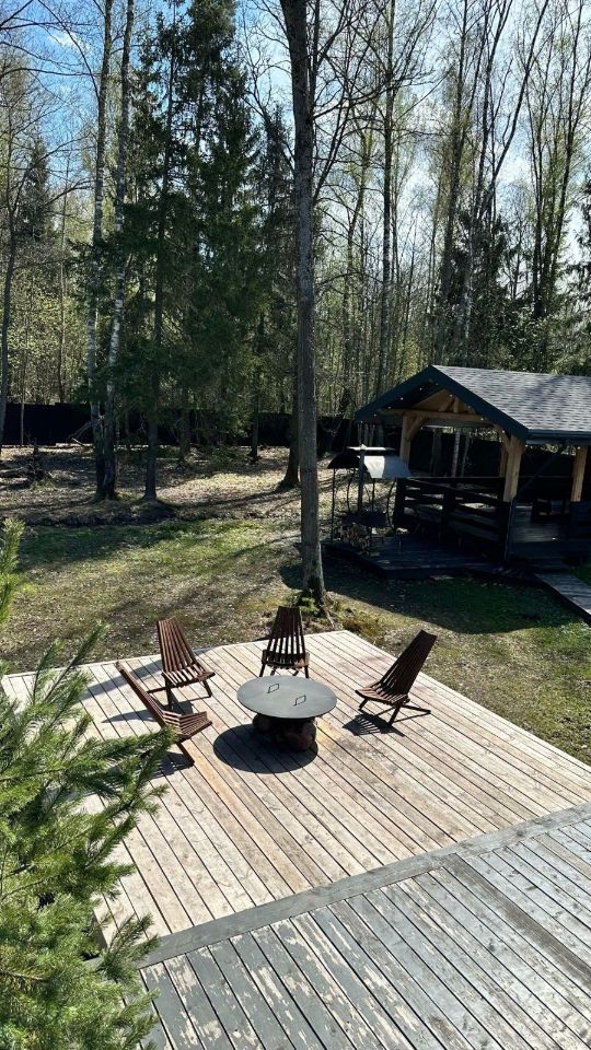 Территория 20 соток, на территории дом, баня и открытая беседка- 40 м2. По периметру дома просторная веранда. Выход с участка сразу в лес.