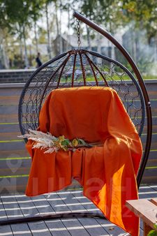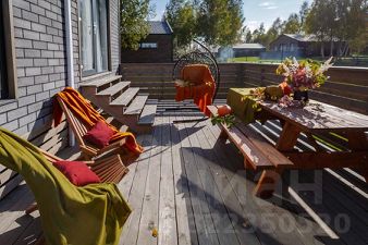 Открытая веранда (37 кв.м) со столом, стульями, а так же с качелями, парковка на 2 машины