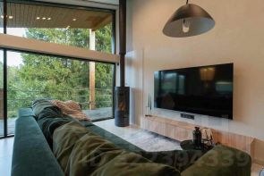 Просыпайтесь каждый день с видом на вековые ели из огромных панорамных окон. Дом стоит в тихом, экологичном месте на берегу реки Яхрома, на территории бывшей Усадьбы 18 века. Ваше личное retreat-пространство круглый год.