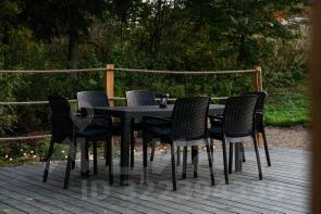 Ваша терраса 120 м² — это продолжение гостиной с выходом в собственный благоустроенный сад. Здесь вас ждет мангальная зона, летний душ, несколько зон отдыха и главная изюминка — встроенная купель для круглогодичного использования
