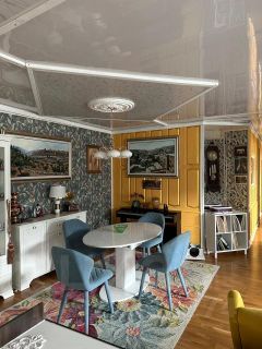 В главном доме 1 этаж гостиная, кухня, гостинная (свободная планировка), детская спальня/игровая, библиотека, кабинет, летняя кухня-веранда. Санузел душевая кабина, сауна на 3-4 человека, туалет, умывальник на 2 раковины.