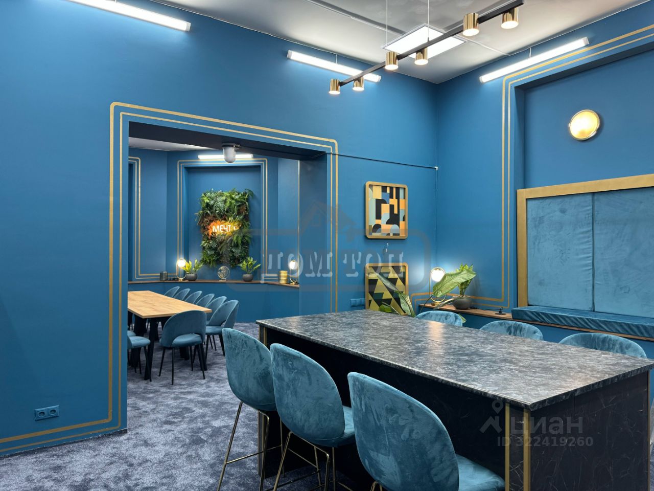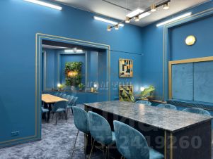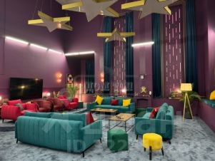 Гостиная банкетный зал на 40 человек. Кухня с посудой и необходимой техникой. Обеденная зона. Бильярдный зал. В гостиной есть большая зона отдыха с различным уровнем освещения и высокими потолками 12 м. Люстры- Звезды.