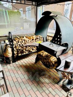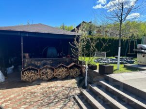 Зона отдыха с беседкой, мангалом, грилем, по периметру туи.