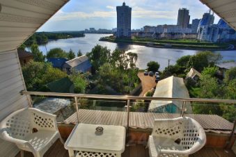 Третий этаж это зона активного отдыха для любителей американского бильярда, английского пинг-понга, русского тренажера и крутого аэрохоккея.4). С балкона открывается ШИКАРНЫЙ вид на Москва-реку и окрестности, можно сделать уникальные фотосессии.