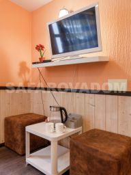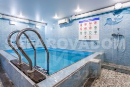 зона отдыха с ТВ, холодильником. бассейн, сауна, бежевый су с душем