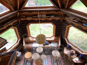 Просторная каминная зона-гостиная объединяет кухню, столовую и зону отдыха с диваном. На кухне установлен новый полноценный гарнитур, новая газовая плита и новая электродуховка. Отсюда лестница на второй этаж и выход на: