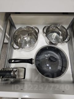 Вся необходимая техника: индукционная плита, холодильник, микроволновка, посудомойка, электрочайник.