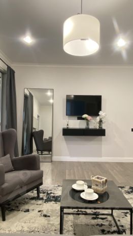 Дом укомплектован мебелью (кухня, гостиная, 2 спальни и детская) Встроенная техникой (холодильник, духовой шкаф, СВЧ, варочная панель).