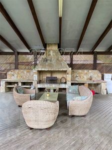 На участке: место для парковки двух машин, плодовый сад, крытая большая беседка барбекю с камином, грилем и мягкой мебелью.