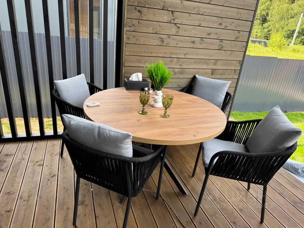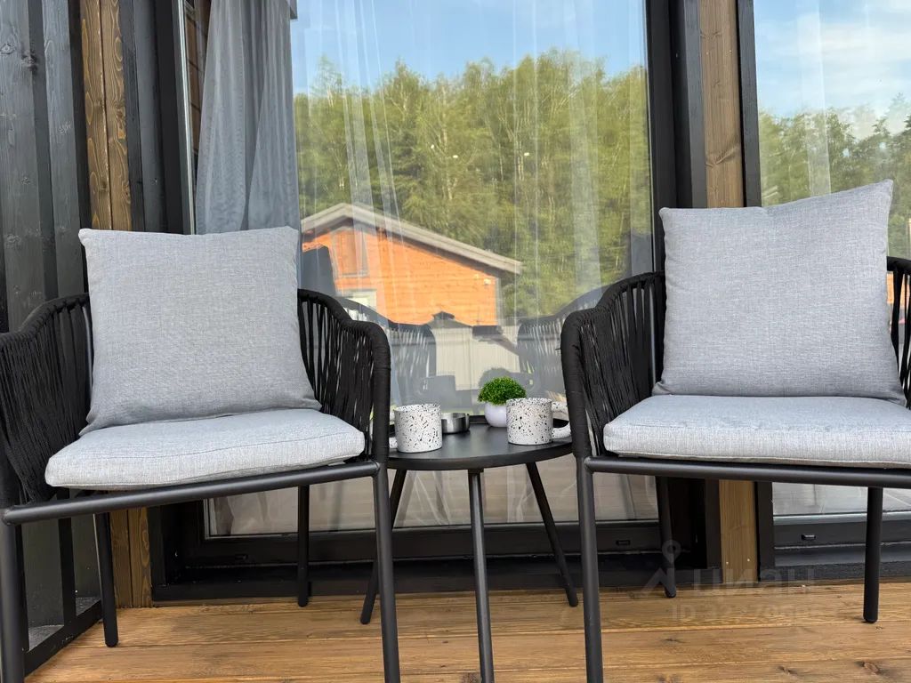 Просторная, мебелированная веранда с видом на лес