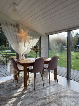 Большая веранда, панорамные окна в пол во всех комнатах - много естественного света и шикарный вид на лес. Закат прямо в ваши окна!