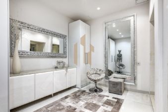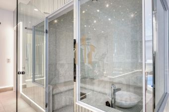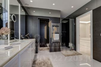 На 1 этаже размещены просторный холл с большой гардеробной, постирочная комната, гостевая спальня, кабинет (можно переоборудовать в небольшую спальню), спа-комплекс с хаммамом, тренажерным залом,бассейном и санузлом,также бильярдная, совмещенная с кабинетом, и еще одна гардеробная комната. Помимо этого, на первом этаже находится гараж, рассчитанный на четыре машино-места и оснащенный зарядкой для электромобилей.