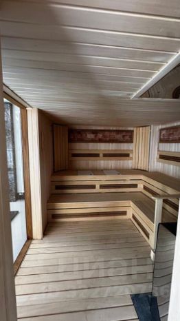 Кроме того, в доме есть большой бассейн с зоной отдыха, сауна с панорамным остеклением и дровяной печью, две душевые при бассейне, а также теплый гараж на два машиноместа и еще четыре места под навесом.