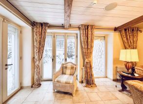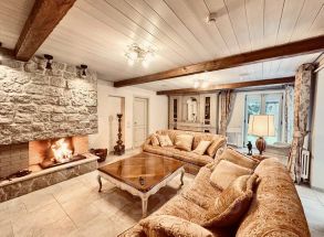 • Уютная гостиная с большим дровяным камином и домашним кинотеатром, выход в ухоженный сад