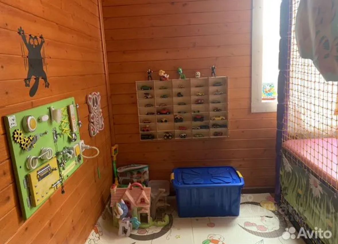 На первом этаже отдельная игровая с батутным центром, лабиринтом, игровыми модулями. Безопасная лестница с защитным барьером, детская кроватка, манеж, Второй этаж 3 изолированные комнаты. Звоните, пишите.