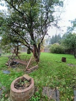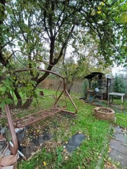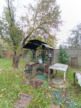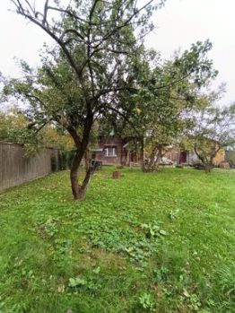 На участке парковочное место (на 2 - 3 машины) , фруктовые деревья, небольшой сарай, колодец, мангальная зона и качели.