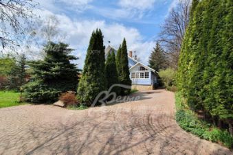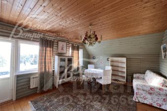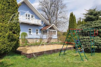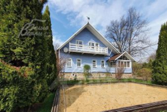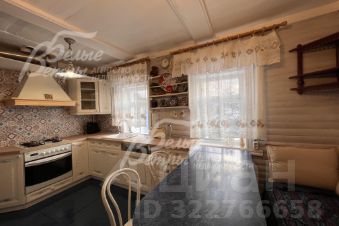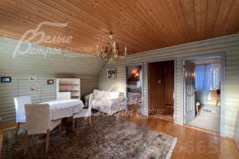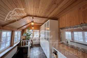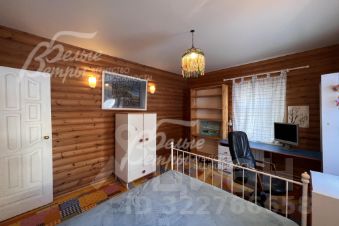 Описание внутренней отделки: стиль ретро (аутентичный русский частный дом). Выполнена отделка из натуральных материалов с элементами стиля прованс. Стены и потолок в основном отделаны вагонкой или блокхаусом. В кухне-столовой стены, потолок и пол - деревянная окрашенная доска. Гостиная: пол и потолок - окрашенная деревянная доска, стены комбинированные: дерево + обои. Санузлы полностью отделаны испанской плиткой, полы - с подогревом. Фартук кухни- стильная испанская плитка маленького формата с декором. В кухне-столовой есть настоящая русская функционирующая печь. Деревянная лестница белого цвета (ступени - естественного цвета, покрыты лаком) с резными балясинами..