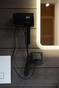 Ванная комната с душем и всем необходимым (фен, тапочки, полотенца, шампунь, гель для душа,ватные диски и палочки)