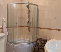 Из оборудования: комплекс водоочистки (есть скважина на четыре дома, но насос находится на участке соседей), газовый котёл, септик, стиральная и посудомоечная машины, холодильник и морозильная камера, электрический камин с обогревом, джакузи и душевая кабина с гидромассажем. Комнаты меблированы полностью. Интерьер спокойный и домашний, в доме уютно. На первом этаже большая гостиная с красивой удобной кухней. Зелёный участок (11 соток) благоустроен, есть беседка для барбекю и садовая печь на углях.