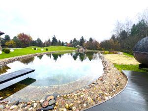 Планировочные решения тщательно продуманы: в каждой спальне есть отдельная гардеробная, санузел и балкон. Гостиная, каминный зал и панорамные окна станут центром притяжения для домочадцев. Кухня и столовая имеют вид на собственный лес с выходом на террасу. На втором этаже расположены изолированные друг от друга пространства для приватного отдыха и уютный кинозал. Участок площадью 83 сотки с ландшафтным дизайном и рекой. Из них 33 сотки вековой хвойный лес. На территории обустроены пруд, пляж, баня, зона отдыха и барбекю, крытое парковочное место для двух автомобилей. ПОКАЗЫ В УДОБНОЕ ДЛЯ КЛИЕНТА ВРЕМЯ.