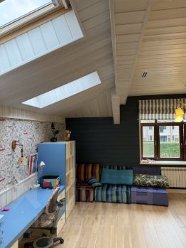2 этаж: холл, кабинет, детская игровая комната и спальня, 1 спальня с ванной и гардеробной комнатой, 1 спальня с душевой кабиной, ванной и с/узлом, 1 гостевая спальня и с/узел.