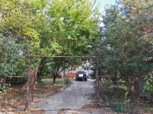 Участок 8 соток огорожен со всех сторон - летний туалет ,парник, яблочные деревья ,виноградник, сосны , Ворота, стоянка на три машины. В поселке круглогодично проживают 20-30 семей .на въезде шлагбаум, видео - наблюдение. Домашние питомцы обсуждаются отдельно - берем не всех .