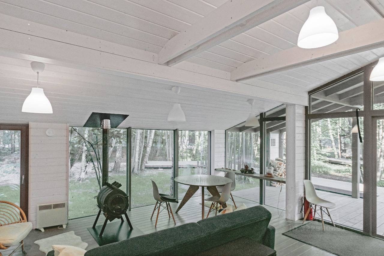 Просторная веранда с видом на участок, куда так приятно выйти с чашкой чая и пледом. Собственная парковка рядом с домом с автоматическими воротами. Участок большой площади, на территории которого расположены четыре уютных дома, также доступных для проживания; березовая роща на участке создает естественные зеленые кулисы, обеспечивая гостям ощущение уединения и приватности, но в то же время благодаря соседству других гостей вы не будете чувствовать себя оторванными от мира, что создает уникальный баланс между уединенностью и комфортом легкой социальной среды.
