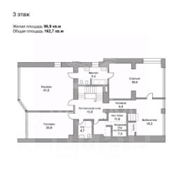 3 этаж: библиотека 18,2 кв.м, три спальни (41,21 и 35 кв.м) и большая ванная комната.