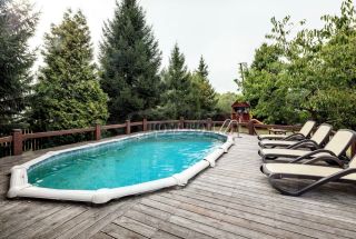 Бассейны: крытый 37 м, глубина 1,6 м с подогревом до 30, летний 38 м, глубина 1,2 м с шезлонгами. Рядом остановка, магазины, аптеки, лес и зоопарк.