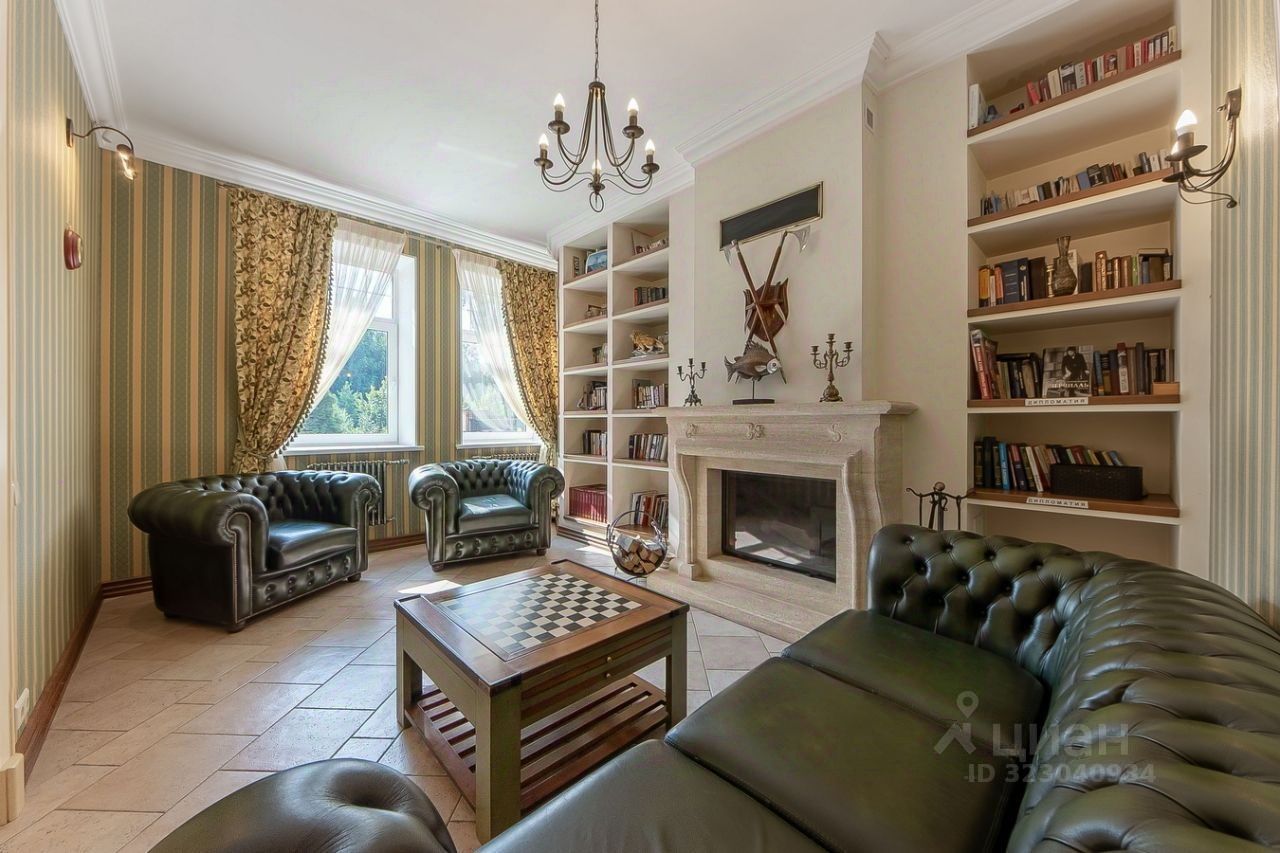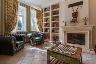 На первом этаже: большая кухня-столовая, библиотека с камином, гостиная, туалет.