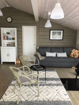 Площадь 65 м2+ 21 м2 терраса, очень тёплый и уютный.