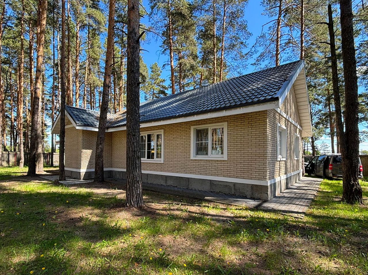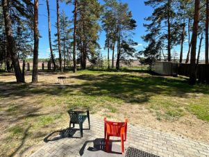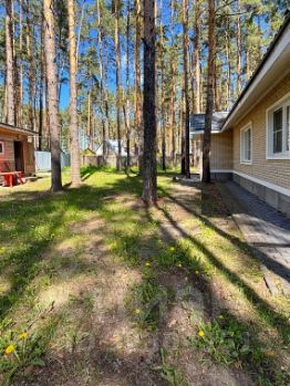 Красивейший участок 20 сот, на котором растет около 100 деревьев, в-основном старые сосны, также есть яблони и пр. С трех сторон глухой забор, с фасада рабица, т.к. эта сторона выходит на большое поле - очень красивый вид. Кроме дома, на участке есть сарай и бытовка.