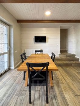 Отделка: стены дерево + декоративная штукатурка, пол и потолок дерево, в санузле и котельной кафель, хорошая европейская сантехника.