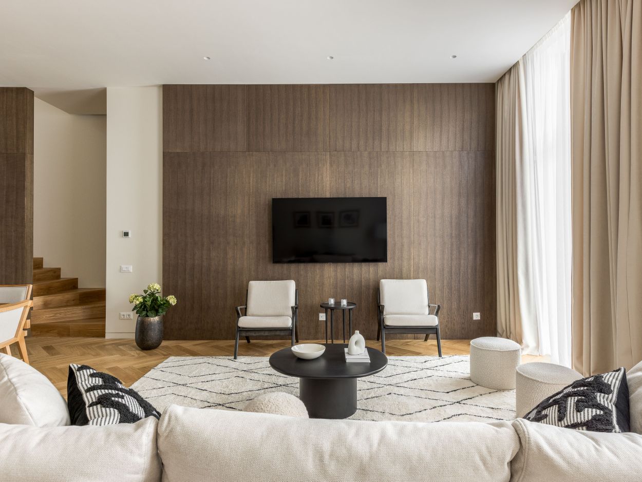 БЕЗ КОМИССИИ! НИКТО НЕ ЖИЛ! Сдается премиальный таунхаус в современном стиле общей площадью 278 кв.м на участке 2,5 сотки. Расположен в элитном коттеджном поселке Парк Фонтэ от Вилладжио Эстейт, в непосредственной близости к Москве по Новорижскому шоссе. ОСОБЕННОСТИ: высокие потолки 3,5 метра, панорамные окна в пол, в отделке использованы исключительно натуральные экологичные материалы: натуральный камень - травертин и натуральное дерево - дуб, премиальная бытовая техника ASKO, Elica, Liebherr, Omoikiri канальное кондиционирование во всех комнатах, немецкие смесители Grohe, двери скрытого монтажа Union высотой 2.7 метра, весь технический свет Центрсвет, инженерная доска в укладке елочкой Finex лестница из массива дуба все столярные изделия из натурального шпона дуба. ТЕХНИКА И ОБОРУДОВАНИЕ Встроенная техника (посудомоечная машина, духовка, СВЧ): ASKO Варочная индукционная плита со встроенной вытяжкой: Elica. 2 холодильника с морозильными камерами: Liebherr. Мойка, смеситель, измельчитель: Omoikiri Стиральная и сушильная машина: ASKO Камин Airtone Технический свет: Центрсвет. Выключатели и розетки: Vimar. Внутрипольные конвекторы: Vitron Настенные радиаторы выкрашенные по RAL в цвет стен: Guardo ОТДЕЛОЧНЫЕ МАТЕРИАЛЫ Пол: инженерная доска из дуба Finex. Стеновые панели, встроенные системы хранения: шпон дуба. Столешница кухонного острова: Травертин Classic Все столешницы в санузлах, стеновая панель в мастер-санузле, откосы стеклянных дверей, столешница в постирочной, камин: Травертин Narciss VC Лестница: инженерная доска из дуба Coswick ПЛАНИРОВКА 1 этаж Прихожая с гардеробной, гостевой с/у, кухня-гостиная-столовая, котельная, терраса. 2 этаж Мастер-блок с с/у и гардеробной комнатой, кабинет с с/у (может быть использован как спальня), лестничный хол, балкон 3 этаж Спальня с с/у, 2 детские спальни, с/у, постирочная, лестничный холл 4 этаж Помещение свободного назначения, эксплуатируемая кровля УЧАСТОК На участке высажены туи, газон и оборудована система автополива. ПОСЕЛОК Park Fonte (Парк Фонте) коттеджный поселок со 182 таунхаусами класса de luxe от Villagio Estate, расположенный в центре березовой рощи у живописного водоема. В 2021 году Park Fonte выиграл премию Посёлок года в номинации Лучшая архитектура Жильцы имеют доступ ко всей инфраструктуре соседних поселков Villagio Estate. Рядом расположены коттеджные посёлки: Миллениум парк, Монтевиль, Гринфилд, Мэдисон, Парк Авеню, Покровский, Новорижский, Кембридж, Футуро-парк.