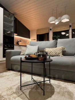 Светлая гостиная комната с раскладным диваном 160*200, совмещенная с кухней и обеденной зоной.