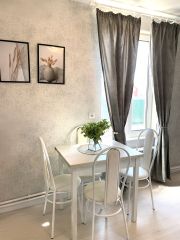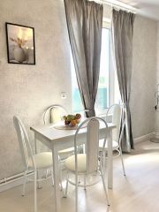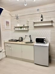 Кухня -гостиная со всей необходимой техникой и посудой.