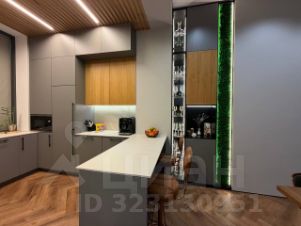 - Кухня сделана полностью на заказ из итальянской смарт-плиты и французского шпона;