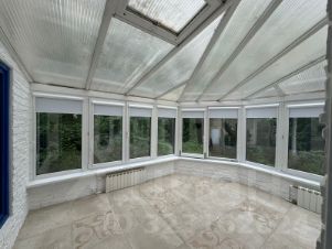 Планировка: 1 этаж: гостиная с камином, кухня-столовая, сан.узел гостевой, спальная комната, зимний сад. 2 этаж: спальная комната с сан. узлом и гардеробной, 2 спальные комнаты, сан. узел, гардеробная.