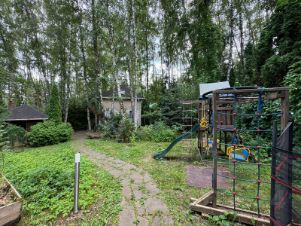 На участке гостевой домик, беседка с зоной барбекю, детская площадка.