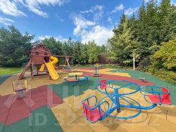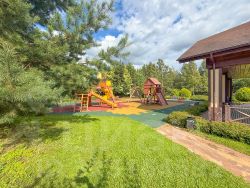 В поселке две детские площадки, спортивная площадка, прогулочные зоны, пруд.