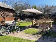 Ухоженный участок с цветами, кустарниками, деревьями. Парковочное место для 2-х автомобилей внутри закрытой территории. Откатные ворота