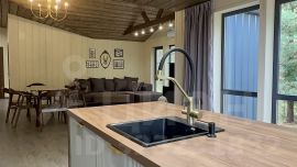 На кухне есть вся необходимая посуда (на 6-8 персон), индукционная плита, холодильник, микроволновая печь, посудомоечная машина, духовой шкаф, капсульная кофемашина с капучинатором, чайник, приветственный набор (кофе, чай, сахар, соль, перец, растительное масло).