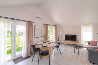 Дом в коттеджном поселке Грин Лаундж в пешей доступности от Истринского водохранилища. Поселок очень красивый и благоустроенный, множество мест для прогулок, детские и спортивные площадки, несколько прудов для рыбалки, река рядом, где можно кататься на сапах. В поселке есть два банных комплекса - Шамбаня и Банникум.
