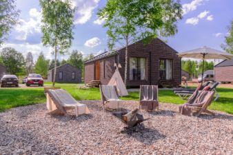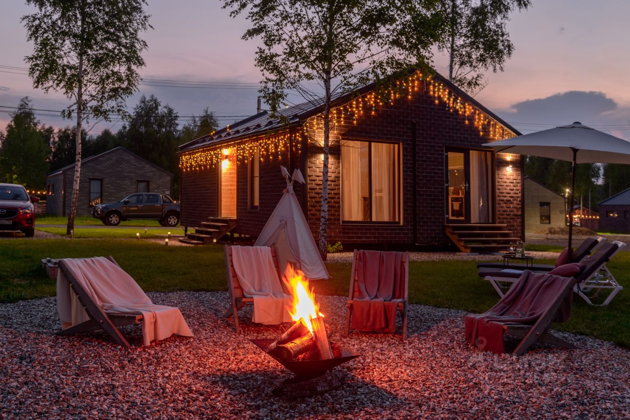 - Костровая лаундж зона с удобными креслами и столом для пикника