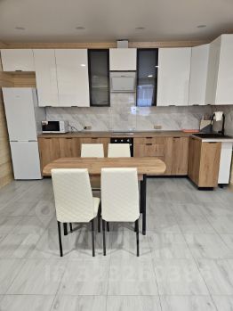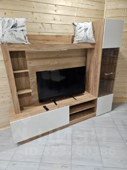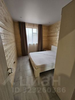 60 кв.м. 2 комнаты и гостинная, совмещенная с кухней. В доме имеется вся необходимая бытовая техника и мебель